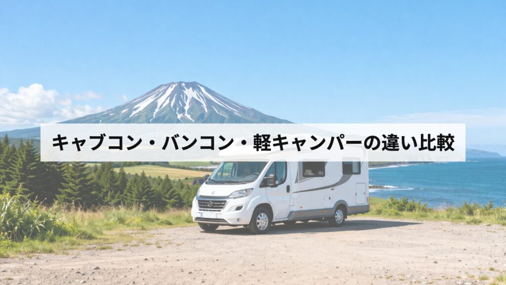 バンコンは外観が普通車と変わらないため普段使いとの兼用がしやすく、軽キャンパーは維持費の安さと取り回しの良さが魅力です。一方で、居住性と装備の充実度ではキャブコンが圧倒的です。レンタル料金の詳しい比較は「キャンピングカーのレンタル料金相場と賢い借り方ガイド」をご覧ください。